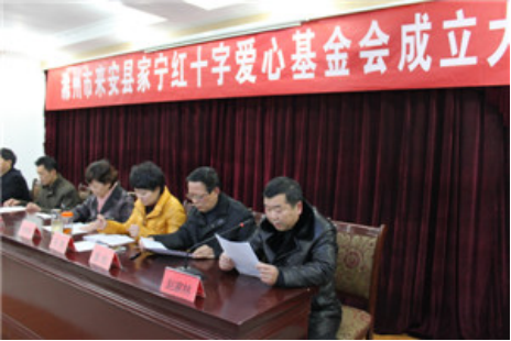 家宁红十字爱心基金会是一个公益慈善组织,在家宁医院和来安县红十字会大力支持下成立的。其宗旨是:汇聚关爱,资助病患,促进本地区医学发展。出席成立大会的有:滁州市红十字会,滁州市民政局、来安县县政府、来安县红十字会、来安县民政局、来安县卫生局等部门领导,还有来自家宁医院和来安县癌症康复协会、来安县肾病病友会、来安县个体医师协会等民间组织的代表共100余人。