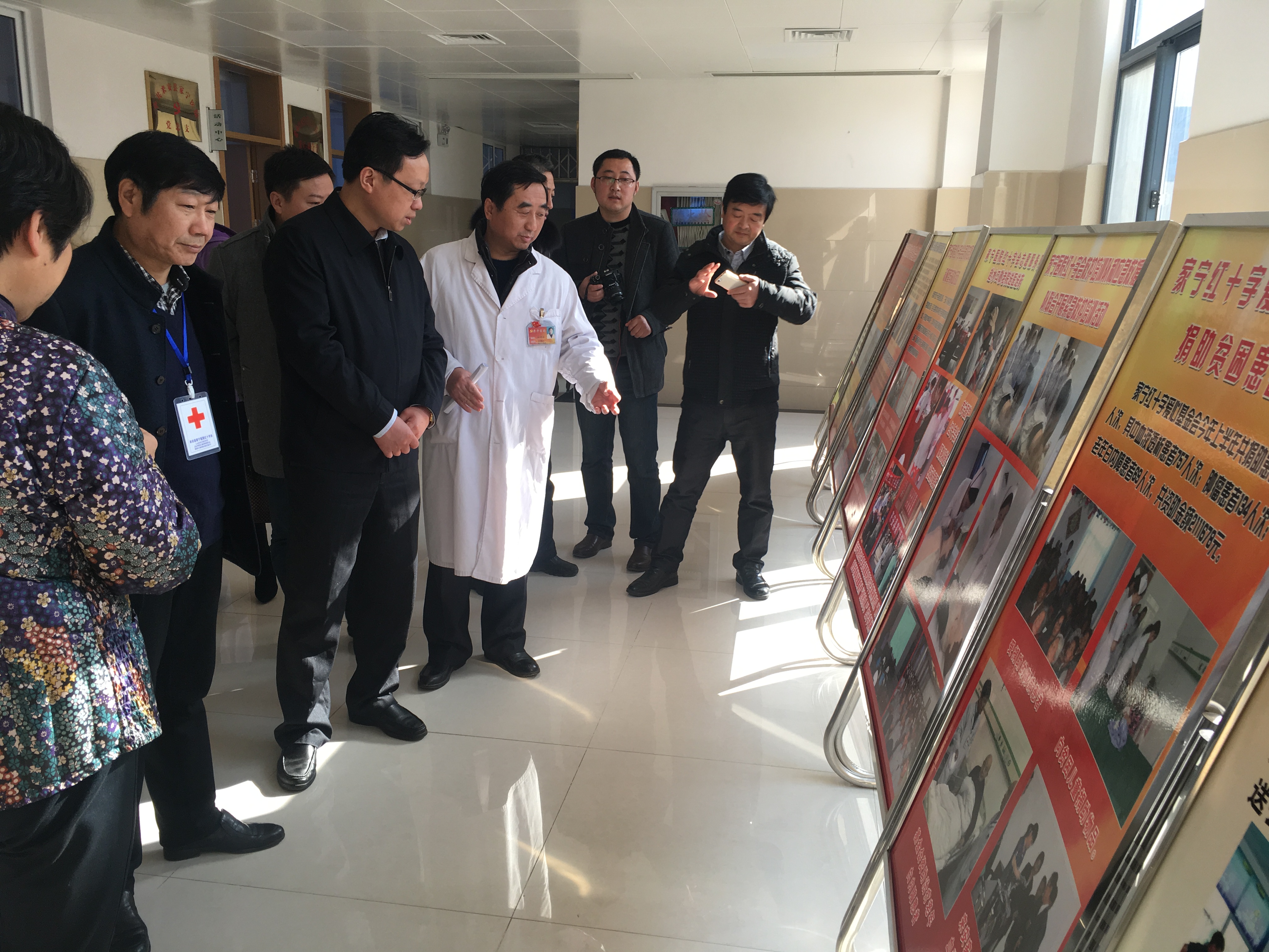 2016年12月5日上午,省红十字会党组成员、秘书长曹芦松一行来我院调研视察红十字会工作,市红十字会常务副会长刘航、县红十字会常务副会长张陶陪同调研。