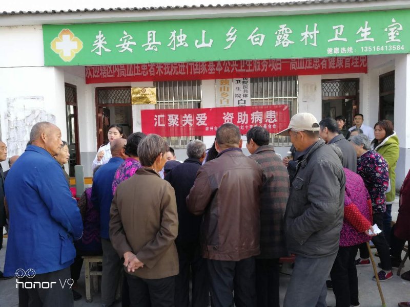 2017年11月10日,基金会组织家宁医院志愿者服务队赴独山乡白露村开展爱心慈善义诊、慰问活动,为当地老人测血压、做心电图、乳腺检查和眼科检查,给白露村村民送医送药送健康。